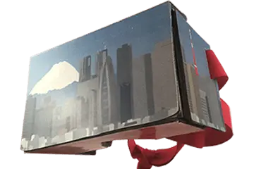 For the constructed headband, I created art for a tokyo city display. Inside you get a better view of some of the nature surrounding Tokyo with hints of the cherry blossom trees. The logo is displayed on the side so that customers can still see it when it is in its sleeve.