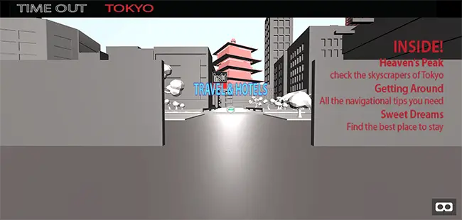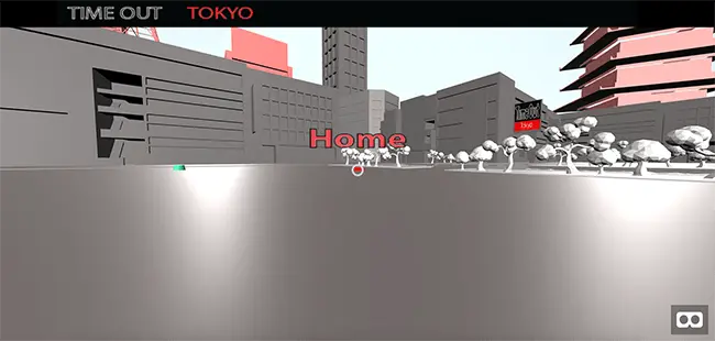 The goal of the demo is to create a sense of space where the user can get a taste of Tokyo before arriving in person. Users will get a slightly different experience dependent on whether they are using VR or observing it through a browser.